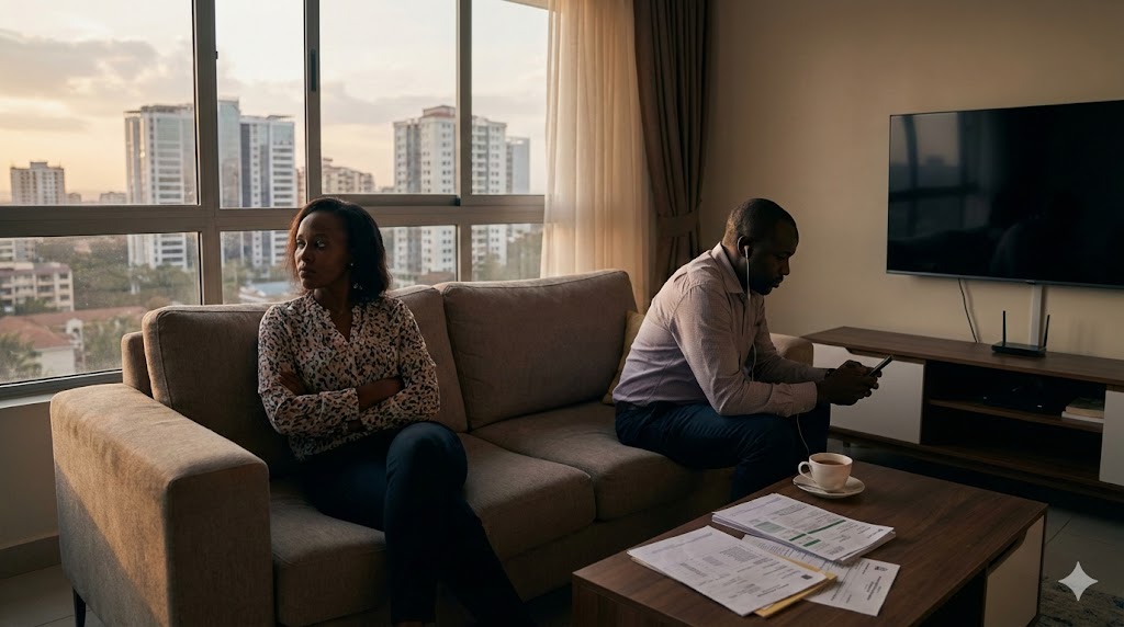 Imagine this: in a sleek Kilimani two-bedroom, the TV drones in the living room while one spouse scrolls TikTok in the bedroom. No arguments, no drama, just parallel lives under one roof. You know couples like this in Nairobi, right? They co-parent via WhatsApp, split bills like roommates, and smile for family photos. Their marriage died quietly, killed not by betrayal but by KSh 100,000 rents and school fees that devour salaries.